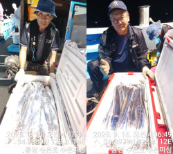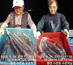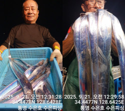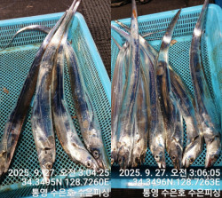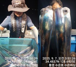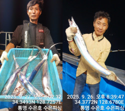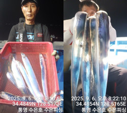 안녕하세요~ 통영 수 은 호 입니다27일 입항 갈치 조황입니다** 오늘 3자리 여유 있습니다~ 토요일만 추첨합니다 날씨가 쌀랑합니다~ ** 14석(9.77톤) 넓고 편하게 낚시하세요~** 예약은 010 3361 4231 전화 주세요~** 외부어탐모니터 설치** 주차는 수은호선상 앞 우성수산 마당에 주차하시면 됩니다 수은호 전용 주차장입니다 (CCTV 녹화중)** 27일(월) 갈치 3자리여유** 28일(화) 갈치 자리여유** 29일(수) 갈치 자리여유** 30일(목) 갈치 자리여유 ** 31일(금) 갈치 자리여유 ** 예약은 010 3361 4231 전화주세요~** 채비 문의는 010 8554 4231 전화주세요~** 위치는 통영시 미우지해안로 123 미수항 입니다** 수은호 계좌번호 입니다 수 협 2020 4635 0530 이종의 수은호 입니다 ** 예약은 선입금 후 예약 진행 됩니다 (14석 선비 20만원)** 갈치 출조하시는 조사님께서는 오후 1시20분까지 오십시요(30분출항) 토요일은 1시까지 오십시요~ ** 장비 대여시 미리 말씀 부탁드립니다 (낚시대세트대여 2만원,쿨러 스티로폴박스포함 1만원)** 4인 단체이상 일렬로 자리 선택** 갈치 출조시에만 잠자리 지정 (1~7번 上선실, 8~14번 下선실)** 승선인원 선장,사무장 포함 22명, 9.77톤** 옆에분들께는 피해를 주시는 행동은 참아 주세요** 조식은 제공하지 않습니다** 신분증,구명조끼,멀미약,장갑,칼은 필수입니다** 구명조끼 미착용시 벌금 있습니다** 선상에서 음주금지,적발시 벌금 있습니다** 하선시 본인 물건 잘 챙기세요~~~** 제로쿨 예약번호 010 9425 4123 ** 수 은 호를 찾아 주시는 모든분들 감사합니다~^^ *** 통영 수은호 예약 안내 ***예약문의 : 010-3361-4231오시는길 : 경상남도 통영시 미우지해안로 123-1홈페이지 : http://sooeun.sunsang24.com/